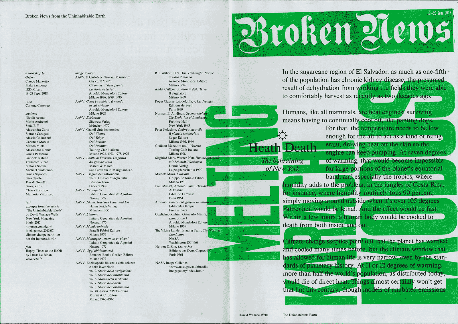 A newsroom devoted to edit and print a set of papers dedicated to climate change dystopian worst-case scenarios as described in David Wallace-Wells' article The Uninhabitable Earth (New York Magazine, 9/7/2017).