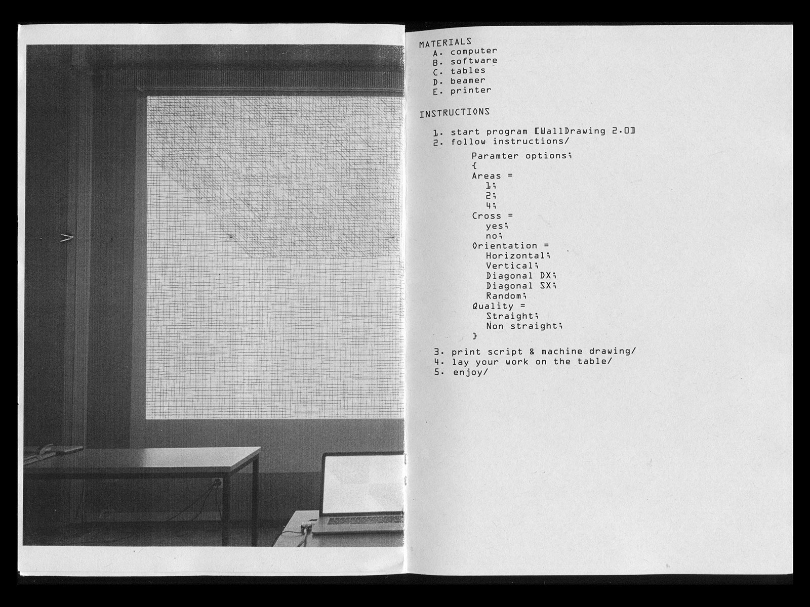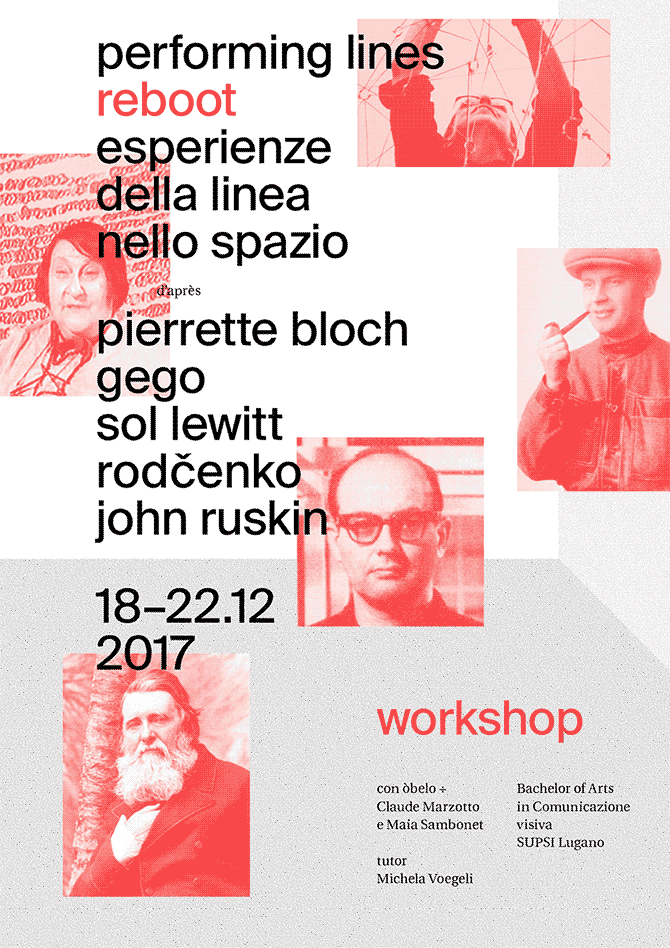 Within its two editions, each group of students is invited to design an exercise reenacting a particular concept of line, based on the words and practice of a different artist. The result is a multifaceted collection of replicable actions embodying ‘line concepts’ by a wide range of authors including Pierrette Bloch, Marcel Duchamp, Adrian Frutiger, Gego, Paul Klee, Sol LeWitt, Henri Michaux and John Ruskin.